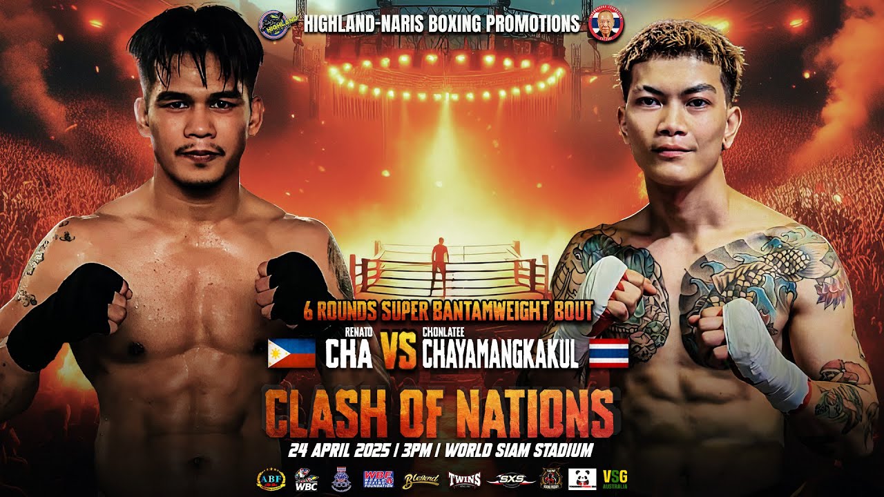 ๐ฅ Renato Cha ๐ต๐ญ vs Chonlatee Chayamangkakul ๐น๐ญ ๐ April 24, 2025 ๐ World Siam Stadium, Bangkok, Thailand ๐ท๏ธ 6-Round Super Bantamweight Bout The heat is on as Renato Cha of the Philippines takes on Thailandโs rising talent Chonlatee Chayamangkakul in a high-stakes 6-round Super Bantamweight war! With national pride on the line, expect relentless combinations, blazing speed, and no room for error as these two warriors collide under the bright lights of Clash of Nations. Will Renato's power pierce through Chonlateeโs defense, or will the hometown hero dominate with technical precision? โก Two nations. One ring. No second chances. Donโt blink โ this is one bout you canโt miss! ๐ฅ Brought to you by Highland Boxing Promotions #ClashOfNations #RenatoVsChonlatee #SuperBantamweightBattle #HighlandBoxing #ThailandVsPhilippines #FightNight2025