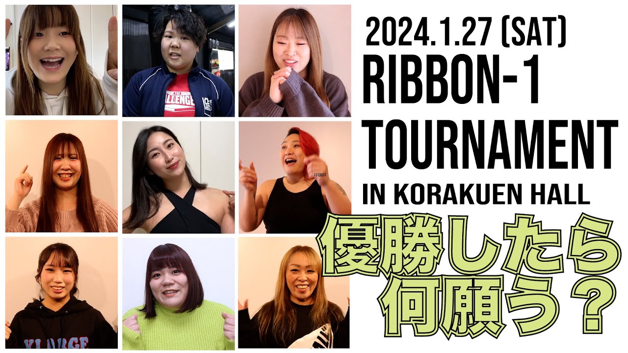 2024年1月27日、アイスリボン後楽園ホール大会で開催される【RIBBON-1 TOURNAMENT】 アイスリボン所属の選抜選手が参加する本トーナメントの優勝賞品は「なんでも願いを叶えられる権。 出場選手10名はどんなことを願うのか?それぞれの想いの丈を語ってもらいました! 誰の願いを応援しますか? 《タイムスタンプ》 0:00 Yappy 0:47 海乃月雫 0:50 しのせ愛梨紗 1:15 星ハム子 1:52 弓李 2:30 松下楓歩 3:24 トトロさつき 4:24 芦田美歩 5:20 咲蘭 5:39 藤滝明日香 【トーナメント初戦対戦相手】 ① Yappy vs 海乃月雫 ② しのせ愛梨紗 vs 星ハム子 ③ 弓李 vs 松下楓歩 ④ トトロさつき vs 芦田美歩 ⑤ 咲蘭 vs 藤滝明日香 大会情報はこちら! アイスリボン~冬物語2024~/後楽園ホール 2024年01月27日 開始時間 11時30分~ / 開場時刻 10時45分 チケット予約はこちら: https://iceribbon.com/event_detail.php?id=3612