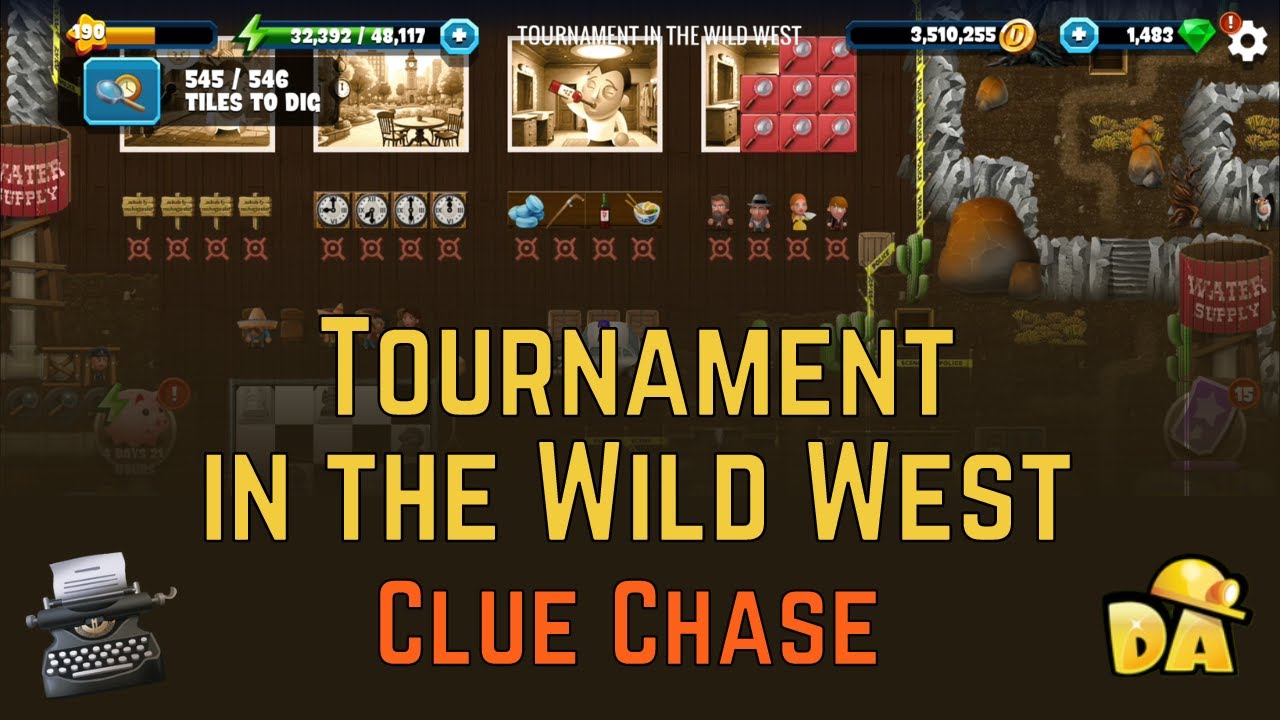 Video of Tournament in the Wild West Diggy's Adventure, 5th location of the Clue Chase event. Complete walkthrough of diggy's adventure tournament in the wild west showing all puzzle solutions, treasure parts and hidden bonuses. In Tournament in the Wild West, we have to solve our last case of current chess champion being knocked out. Timestamps: 0:00 - Find more info about the case. 1:15 - Explore clue areas. 2:06 - Treasure Part. 2:41 - Press all buttons together to open door. 3:07 - Continue to explore the crime scenes. 5:41 - Treasure Part 2. 7:38 - Check out the remaining clue areas. 10:31 - Reveal clues and mark items. 13:29 - Talk to Jenny, quest complete. Tournament In The Wild West Quest Details: Most Dangerous Match. 1. Visit The Clue Areas (6). 2. Identify The Perpetrator. 3. Talk To Jenny Flatter. Energy needed for completely clearing tournament in the wild west: Egypt: 12,085 Scandinavia: 65,545 China: 187,505 Atlantis: 382,530 Greece: 661,235 New World: 939,850 Terra: 1,170,485 Mars: 1,437,620 Mine contains 546 tiles and 15 black typewriter. Clue Chase video links: 1. House Of Jenny Flatter: https://youtu.be/mHWwmJauJwM 2. City In Suspense: https://youtu.be/ORUHIXp0E-E 3. Renowned Gallery: https://youtu.be/4nbYIZ9jejk 4. Castle On The Hill: https://youtu.be/4nbYIZ9jejk 5. Tournament In The Wild West: https://youtu.be/sXki5JsfY5Y Clue Chase playlist: https://www.youtube.com/playlist?list=PLvGcAUPohOJ3lM8u57uYIW5_9uYAR5xCy Subscribe for more such diggy's adventure videos every event. 😃 Thank you Kris H, 12369ja and others for being a member of Abhi Gaming. #TournamentInTheWildWest #ClueChase #DiggysAdventure #Diggy