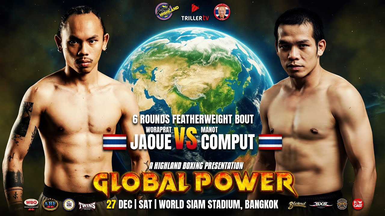 6 Rounds - Featherweight Bout Highland Boxing Promotions presents GLOBAL POWER December 27, 2025 World Siam Stadium, Bangkok, Thailand #GlobalPower #JaoueVsComput #Featherweight #HighlandBoxing #WorldSiamStadium #BangkokBoxing #InternationalShowdown