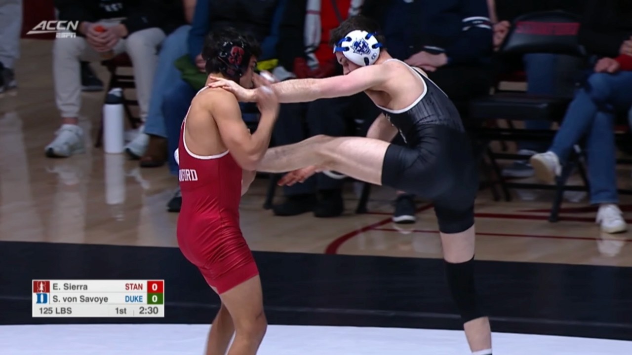 2025/26 Stanford vs Duke wrestling dual 125lbs Edwin Sierra (STAN) tech fall Spencer von Savoye (DUKE) I do not own this video, all credit/rights to ESPN/ACC