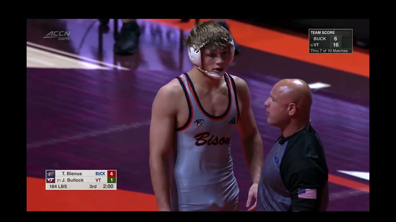 2025/26 Virginia Tech vs. Bucknell wrestling dual 184lbs Tyler Bienus Bucknell dec #21 Jaden Bullock (VTECH) I do not own this video, all credit/rights to ESPN/ACC