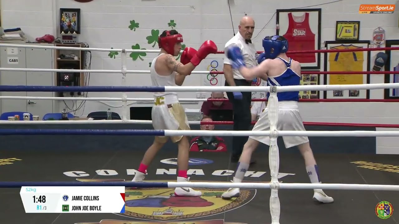 Jamie Collins (Drimnagh) and John Joe Boyle (St John Bosco A) contested the 2024 National Junior 2 Championship 52kg final, streamed by @streamsport-ie7508 #boxing #boxingireland #boxer #irishboxing #IABA #olympicsport #iaba #bout #fight #titleboxing #championshipboxing #boxingnews