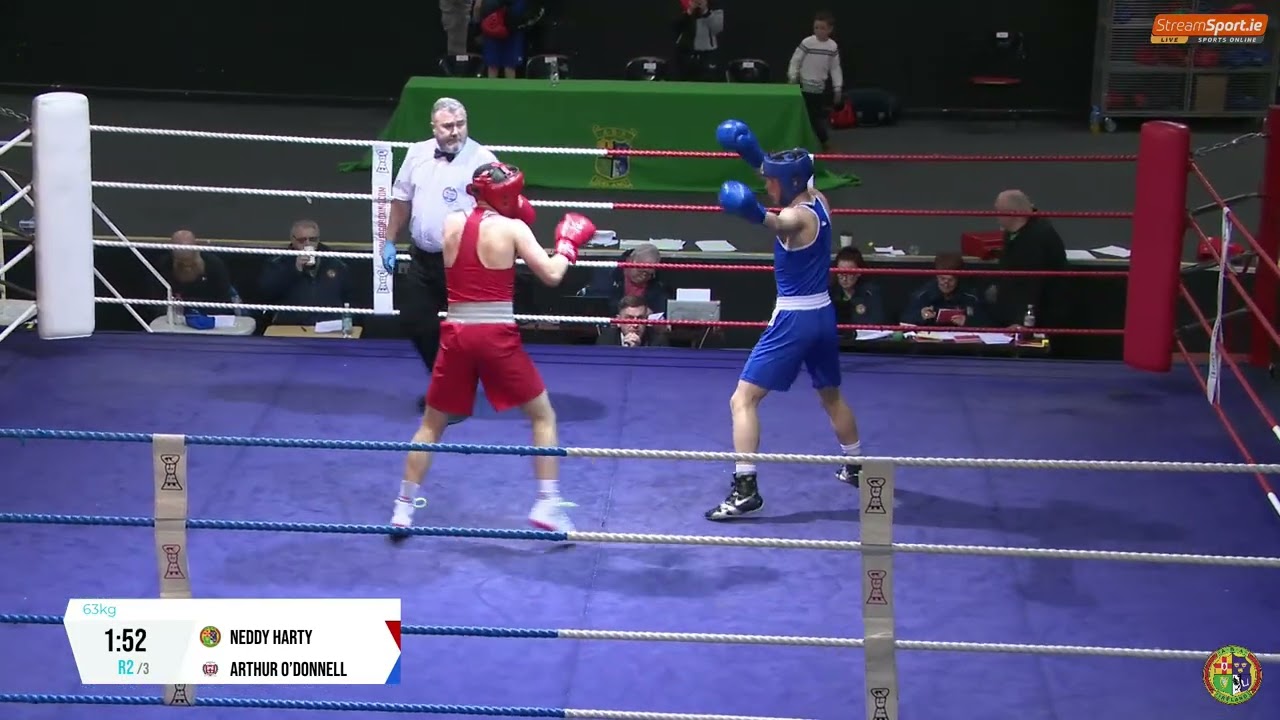 Edward Harty (Portlaoise) and Arthur O’Donnell (Charleville) contested this 2024 National Senior Cadet C'ship 63kg 2nd series preliminary, streamed by @streamsport-ie7508 #boxing #boxingireland #boxer #irishboxing #IABA #olympicsport #iaba #bout #fight #titleboxing #championshipboxing #boxingnews #fightnight