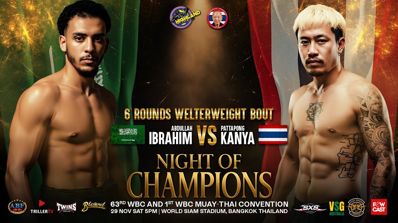 6-Round Welterweight Bout WBC Night of Champions 📍 World Siam Stadium, Bangkok, Thailand A cross-continental clash. Dawod brings Saudi power and determination, while Kanya defends home pride with speed and skill. Six rounds of nonstop action in the welterweight division—expect fireworks in the ring. 🥊 #WBCNightOfChampions #DawodVsKanya #Welterweight #HighlandBoxingPromotions #Boxing #FightNight #SaudiArabiaBoxing #ThailandBoxing #Bangkok #WorldSiamStadium #6Rounds #RisingContenders #BoxingAction