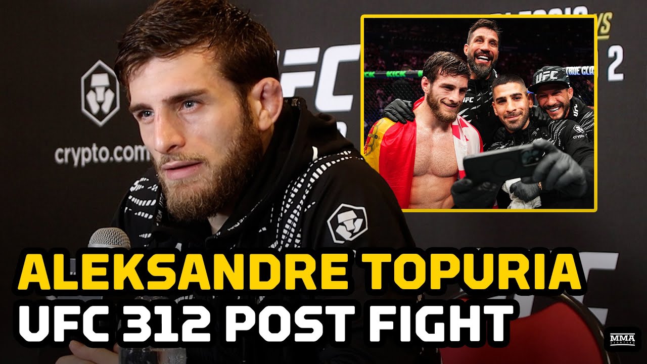 #UFC bantamweight Aleksandre Topuria reacts to his win over Colby Thickness at #UFC312, his cornermen Ilia Topuria, Guram Kutateladze, & Merab Dvalishvili, and pays respect to his brother's former rival Alex Volkanovski Join this channel to get access to perks: https://www.youtube.com/cha.../UC4f1JueVgo5t9HSmobCRPug/join Subscribe to MMA Fighting on YouTube: http://goo.gl/dYpsgH Subscribe to MMA Fighting feed on iTunes: https://podcasts.apple.com/.../mma-fighting/id320642139 Check out our full video catalog: http://goo.gl/u8VvLi Visit our playlists: http://goo.gl/eFhsvM • Like on Facebook: https://mma-fighting.visitlink.me/jXx747 • Follow on X: https://mma-fighting.visitlink.me/oHZAG3 • Follow on Instagram: https://mma-fighting.visitlink.me/eZP5ff • Follow on TikTok: https://mma-fighting.visitlink.me/DZzQ3W • Follow on Threads: https://mma-fighting.visitlink.me/pJJ2xj • Follow on Bluesky: https://mma-fighting.visitlink.me/GIxe-N • Subscribe on Twitch: https://mma-fighting.visitlink.me/nSjCJV Read More: http://www.mmafighting.com MMA Fighting is your home for exclusive interviews, live shows, and more for one of the world's fastest-growing sports. Get latest news and more here: http://www.mmafighting.com See less