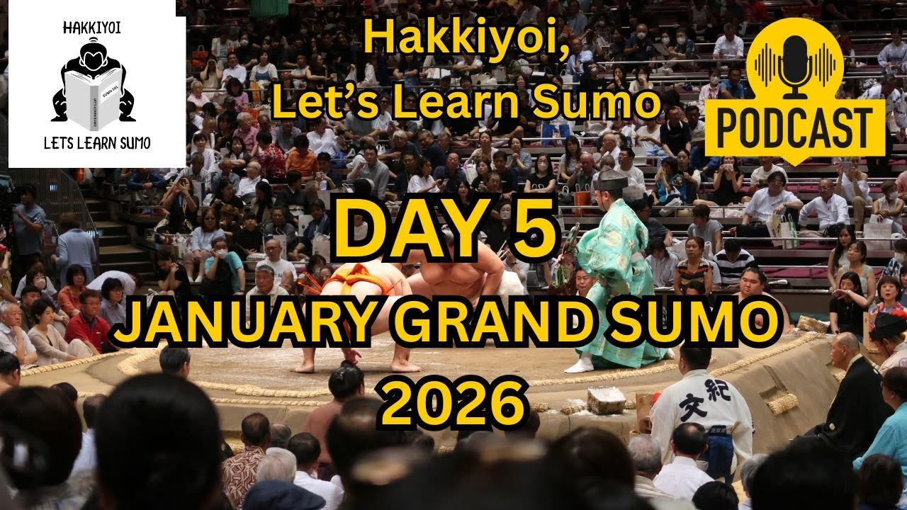 (Audio) Let’s Learn Sumo - Day 5 of the January Hatsu Grand Sumo Tournament in Tokyo, Japan. A big pack still in contention. If you enjoy my content you can donate to my Kinboshi Fund at the Buy Me a Coffee link to help pay for some of the subscriptions to keep this channel running. Hakkiyoi listeners! - #sumo #learnsumo #Japan #Hoshoryu #Onosato #Aonishiki #Kotoshoho #Takayasu #Kinbozan #Tobizaru #hakuoho #Wakatakakage #Oho #wrestling #Tokyo #takerufuji #Onosato #sumowrestling #Onkatsu #Hokuseiho #scandal #kotozakura #tokyo #Fukuoka #Japan #Yokozuna #RopeRun #Ura #Kokugikan #sumowrestling #basho #Henka #fightoftheyear Apple Podcast Spotify Instagram X (The Symbol formerly known as Twitter) Send us a text (
