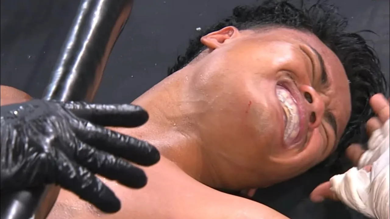 Woman Dominates Man in Grappling Hold