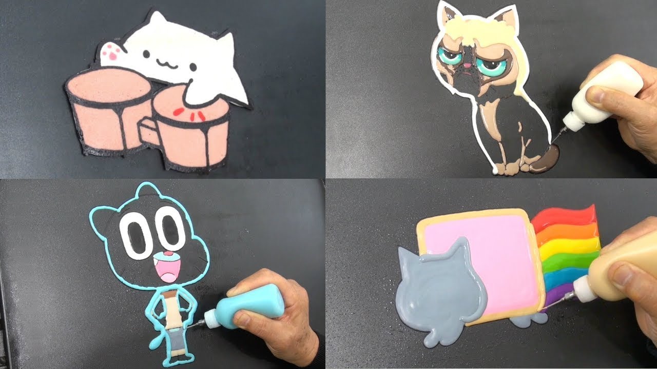 Cats Pancake Art - Bongo Cat, Nyan Cat, Gumball, Grumpy Cat Music: 1. Cool Cat Alley 4 by Victor Olsson 2. Itty Bitty 8 Bit by Kevin MacLeod is licensed under a Creative Commons Attribution license (https://creativecommons.org/licenses/by/4.0/) Source: http://incompetech.com/music/royalty-free/index.html?isrc=USUAN1100764 Artist: http://incompetech.com/ 3. Walking The Cat by Gunnar Johnsen 4. Cat Burglar Dance by Hakan Eriksson