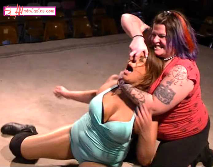 CJ Lane refuses to put up with The Kitten's accusations that she is a "trash bag". Too bad for CJ that The Kitten is ready to match CJ's old school attire with an old school pounding! There isn't a part of CJ that goes unscathed in this one-sided encounter. The Kitten knows every dirty trick in the book and she uses them to assault CJ's back, belly, and throat. There is no limit to what The Kitten will stoop to and that includes choking CJ on the ropes, hooking her nose and straight up strangling her. She puts her size to good use as well, splashing and sitting on CJ at every opportunity. What little offense CJ is able to muster only serves to enrage the Kitten. She crushes CJ with a Clothesline and a Tombstone Piledriver. CJ might just let The Kitten call her whatever she wants in the future...