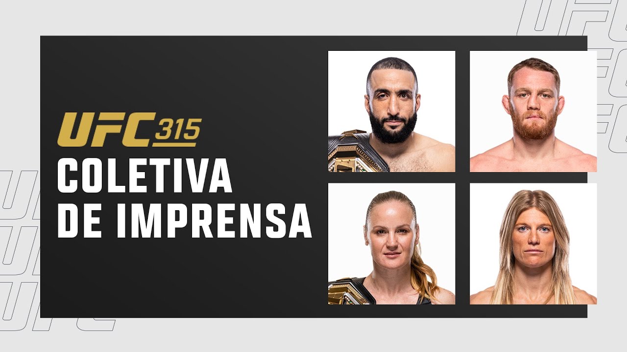 Acompanhe a coletiva de imprensa do #UFC315 e veja as primeiras encaradas com todos os atletas do card principal, direto de Montreal, no Canadá! Não perca o #UFC315 neste sábado (3) a partir das 19h30 (horário de Brasília) ao vivo e com exclusividade no #UFCFightPass. Assine já: https://ufc.ac/YT-UFC-coletiva Se inscreva para ter todo o conteúdo mais recente do UFC Brasil: https://ufc.ac/3ofRm20 Conecte-se com o UFC em todas as plataformas: 🔴 Website: http://www.ufc.com.br 🔵 Facebook: https://www.facebook.com/UFCBrasil 🟣 Instagram: https://www.instagram.com/ufc_brasil/ ⚫️ TikTok: https://www.tiktok.com/@ufcbrasil ⚫️ X: https://twitter.com/UFCBrasil Cadastre-se para receber notícias e conteúdo exclusivo do UFC no seu email: https://www.ufc.com.br/newsletter