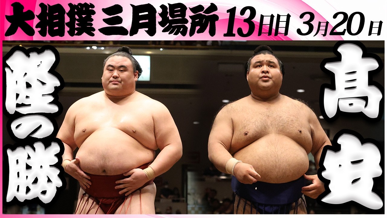 令和8年三月場所 前頭四枚目 隆の勝(8勝4敗) 関脇 髙安(6勝6敗) 今場所も宜しくお願い致します! 一緒に大相撲を盛り上げましょう! 🎦おすすめ人気動画リスト <相撲好き必見!>相撲部屋稽古特集 ∟https://www.youtube.com/playlist?list=PLGbh7k1KcL3kdjK_VNfjLWLXIQnLe_ore <全取組公開>活躍した力士の全取組を完全収録! ∟https://www.youtube.com/playlist?list=PLGbh7k1KcL3nEkxC0lGfP_jdiNd2JpKOj 握力横綱〈握力NO.1関取は誰だ!?〉 ∟https://youtu.be/iw20sVujqIo ラーメン二郎とちゃんこ鍋・禁断のコラボ ∟https://youtu.be/3Wzwxpyv4Jk お相撲さんの場所入り<令和7年五月場所・定点企画>SUMO └https://youtu.be/KCVWxrTZ7lA ___________________________ 🤗おすすめ再生リスト 本場所・取組 ∟https://youtube.com/playlist?list=PLGbh7k1KcL3lhFq5rx4BK4XjuoSQMfo48 大相撲ゴルフ企画 ∟https://youtube.com/playlist?list=PLGbh7k1KcL3lZf1PMrjR8lqGJu8iaqk9q 相撲部屋(朝稽古) ∟https://youtube.com/playlist?list=PLGbh7k1KcL3kdjK_VNfjLWLXIQnLe_ore 人気動画切り抜きまとめ ∟https://youtube.com/playlist?list=PLGbh7k1KcL3lMjn-AckTj7Smr6R0jUqsk 【アーカイブ場所】初日無料! ∟https://youtube.com/playlist?list=PLGbh7k1KcL3kgzLvhiz4tBF1sQhFnYukI 親方ちゃんねる(対談、インタビューも) ∟https://youtube.com/playlist?list=PLGbh7k1KcL3nbFptlOMrnOuv0X98orxbH ___________________________ #相撲 #隆の勝 #髙安 ___________________________