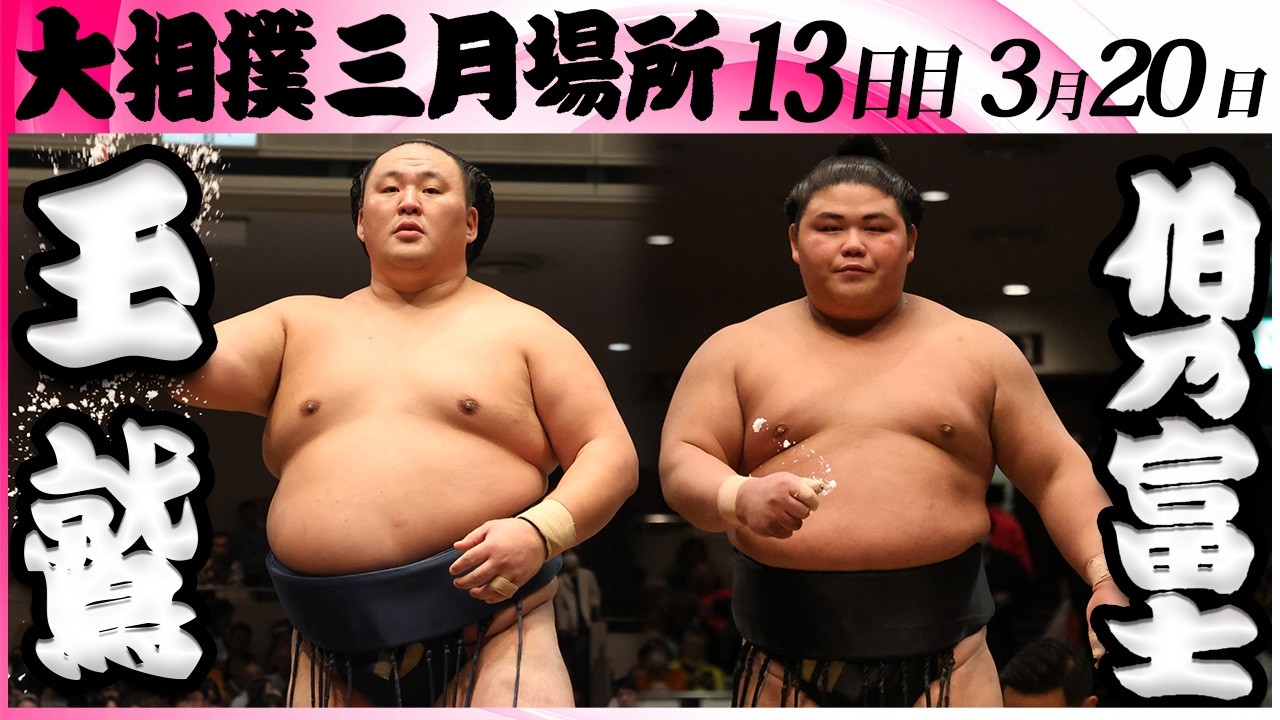 令和8年三月場所 前頭九枚目 玉鷲(3勝9敗) 前頭七枚目 伯乃富士(3勝5敗4休) 今場所も宜しくお願い致します! 一緒に大相撲を盛り上げましょう! 🎦おすすめ人気動画リスト <相撲好き必見!>相撲部屋稽古特集 ∟https://www.youtube.com/playlist?list=PLGbh7k1KcL3kdjK_VNfjLWLXIQnLe_ore <全取組公開>活躍した力士の全取組を完全収録! ∟https://www.youtube.com/playlist?list=PLGbh7k1KcL3nEkxC0lGfP_jdiNd2JpKOj 握力横綱〈握力NO.1関取は誰だ!?〉 ∟https://youtu.be/iw20sVujqIo ラーメン二郎とちゃんこ鍋・禁断のコラボ ∟https://youtu.be/3Wzwxpyv4Jk お相撲さんの場所入り<令和7年五月場所・定点企画>SUMO └https://youtu.be/KCVWxrTZ7lA ___________________________ 🤗おすすめ再生リスト 本場所・取組 ∟https://youtube.com/playlist?list=PLGbh7k1KcL3lhFq5rx4BK4XjuoSQMfo48 大相撲ゴルフ企画 ∟https://youtube.com/playlist?list=PLGbh7k1KcL3lZf1PMrjR8lqGJu8iaqk9q 相撲部屋(朝稽古) ∟https://youtube.com/playlist?list=PLGbh7k1KcL3kdjK_VNfjLWLXIQnLe_ore 人気動画切り抜きまとめ ∟https://youtube.com/playlist?list=PLGbh7k1KcL3lMjn-AckTj7Smr6R0jUqsk 【アーカイブ場所】初日無料! ∟https://youtube.com/playlist?list=PLGbh7k1KcL3kgzLvhiz4tBF1sQhFnYukI 親方ちゃんねる(対談、インタビューも) ∟https://youtube.com/playlist?list=PLGbh7k1KcL3nbFptlOMrnOuv0X98orxbH ___________________________ #相撲 #伯乃富士 #玉鷲 ___________________________