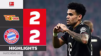 1. FC Union Berlin vs. FC Bayern München – Highlights from Matchday 10! ► Sub now: https://redirect.bundesliga.com/_bwCS Watch the Bundesliga highlights of 1. FC Union Berlin vs. FC Bayern München from Matchday 10 of the 2025/26 season! Goals: 1-0 Danilho Doekhi (27'), 1-1 Luis Díaz (38'), 2-1 Danilho Doekhi (83'), 2-2 Harry Kane (90') ► Watch Bundesliga in your country: https://redirect.bundesliga.com/Bunde... ► Join the conversation in the Bundesliga Community Tab: https://www.youtube.com/bundesliga/co... We’ve seen another Matchday full of unmissable Bundesliga drama. Don’t miss any highlights from Germany’s football league! The Official Bundesliga YouTube channel gives you access to videos about the greatest goals, best moments and anything else you should know about. Make sure to subscribe now and visit us at https://bndsl.ga/comYT to find out more about the fixtures, analysis and news about your favourite team!