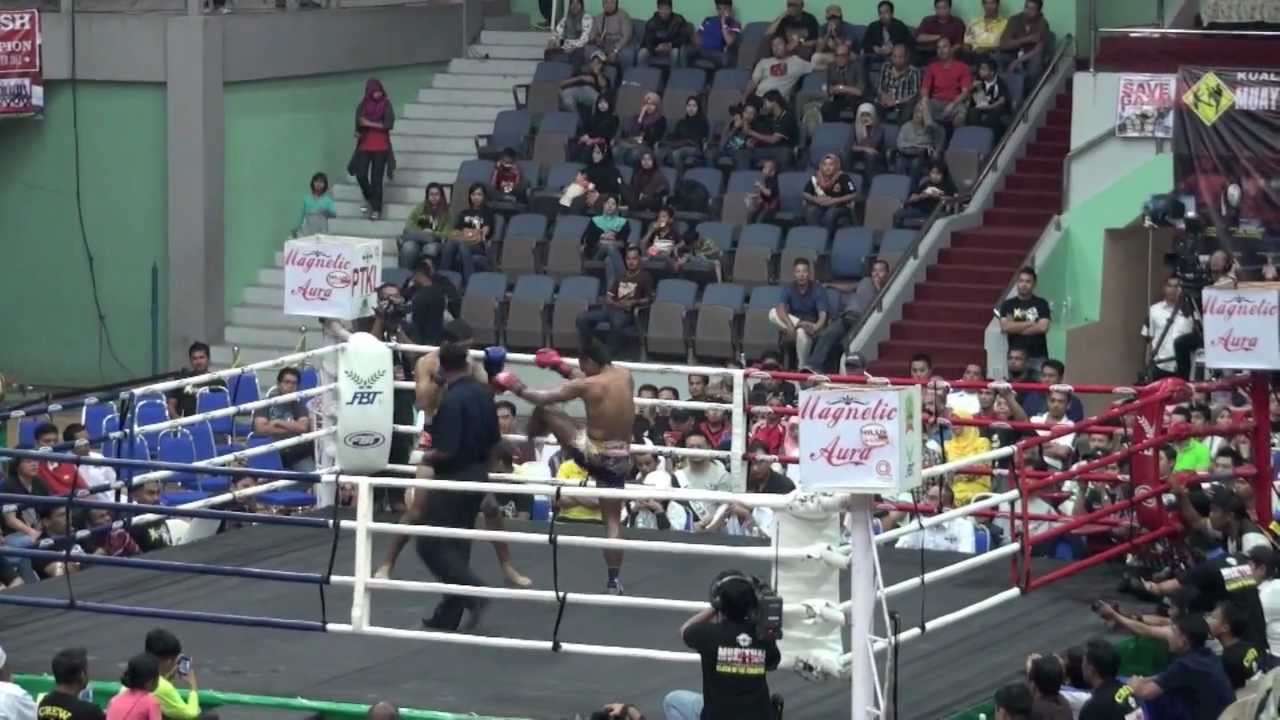 Tiger Muay Thai fighter Eric Bradach (USA) takes on the vastly more experienced Amin Semerah Padi (Malaysia) in this fight at Titiwangsa Stadium, Kuala Lumpur, Malaysia. Eric used good counters and combinations in a back and forth fight, but unfortunately an eye injury forced Eric to stop in the fourth round. http://www.tigermuaythai.com/ http://www.fightingthai.com/