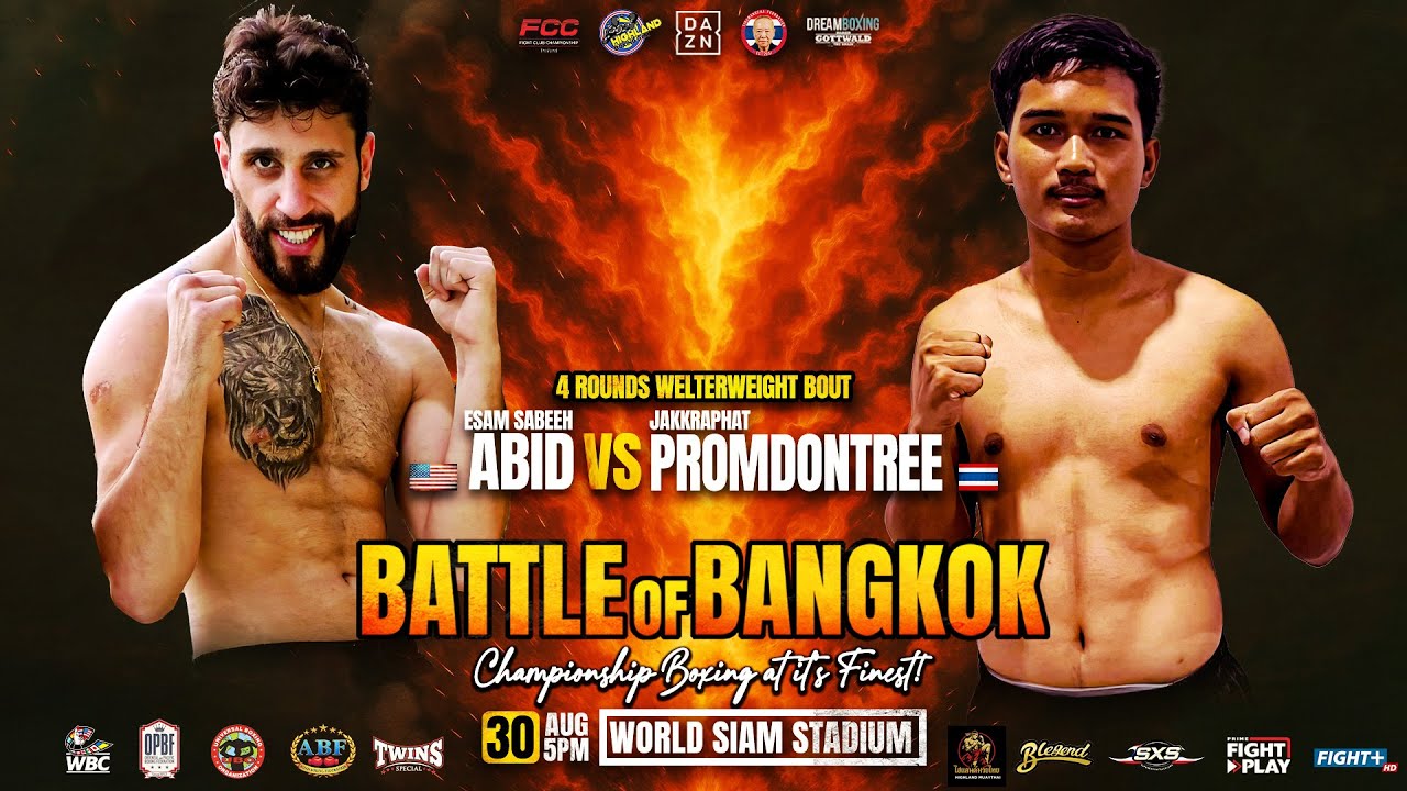 🔥 BATTLE OF BANGKOK: PRELIMS SHOWDOWN 🔥 📍 World Siam Stadium, Bangkok, Thailand 🥊 4 Rounds | Welterweight It’s USA vs. Thailand in a welterweight clash that’s all about heart and hustle! 🇺🇸 Esam Abid comes in with firepower and fierce determination, looking to leave a mark in Bangkok. 🇹🇭 Jakkraphat Promdontree is a local warrior, ready to defend home soil with skill, stamina, and serious pride. 💥 Expect fast hands, sharp exchanges, and no holding back — just 4 rounds to prove who wants it more. 🎥 Two fighters. One ring. Let the battle begin. #BattleOfBangkok #AbidVsPromdontree #BoxingThailand #Welterweight #FightNight #IraqVsThailand #PrelimsReady