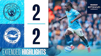 Relive the best of the action as City had to settle for a 2-2 draw with Brighton at the Etihad Stadium. In an entertaining clash between two teams aiming for Champions League football next season, the Blues went ahead early on through an Erling Haaland penalty. Brighton then levelled through a Pervis Estupiñán free-kick before Omar Marmoush restored our lead before the break. A scruffy but unavoidable own goal by Abdukodir Khusanov moments into the second-half ended the scoring in what was an open and entertaining clash. SUBSCRIBE! http://www.youtube.com/subscription_c... http://www.mancity.com / mancity / mancity / mancity / mancity About the Official Man City YouTube Channel: Here you will find all the latest videos from Manchester City, including, all Premier League, Champions League, FA Cup and League Cup goals, highlights, behind-the-scenes footage, training and much more. Get closer to the likes of Jack Grealish, Bunny Shaw, Kevin De Bruyne, Lauren Hemp, Erling Haaland, Joško Gvardiol, Phil Foden, Vivianne Miedema and the rest of Pep Guardiola & Gareth Taylor's teams!