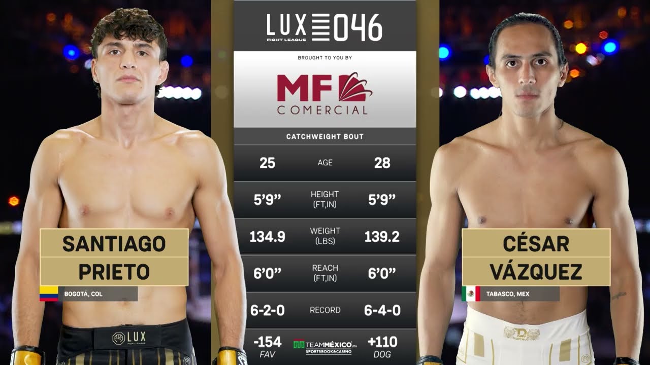 Santiago Prieto llegó a LUX 046 listo para dejar huella... ¡y lo logró con una sumisión letal en el segundo round! 🔥 César Vázquez dio pelea, pero no pudo resistir el grappling técnico y preciso de Prieto, quien cerró el combate de forma espectacular. Revive esta victoria por sumisión que sacudió la cartelera de LUX Fight League. 📽️ Mira la pelea completa y no te pierdas este final explosivo. 🔔 Suscríbete para más combates de alto nivel. #LUX046 #SantiagoPrieto #CesarVazquez #MMA #LuxFightLeague #Sumisión #Finalización --------------------------------------------------------------------------------------------------------------------------- 👉Únete a la comunidad de Lux Fight League: Vive la emoción de la MMA con combates poderosos, análisis profundos y contenido exclusivo: https://luxfightleague.com/ ¡Explora nuestros eventos! ➡️https://luxfightleague.com/eventos/ 📲Mantente Conectado para Más: 📲 Síguenos en las redes sociales 👇 📲 Instagram: https://www.instagram.com/luxfightleague 📲 Facebook: https://www.facebook.com/luxfightleague 📲 Twitter: https://www.twitter.com/luxfightleague 📲 TikTok: https://www.tiktok.com/@luxfightleague 💻 Official Website: https://www.luxfightleague.com