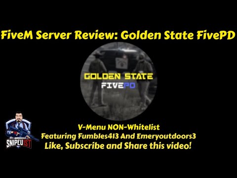 In this video I am reviewing a FiveM server called Golden State FivePD. This is a series I am putting together where I go into a random server and see how well of a roleplay session I have. Reviewing 4 key aspects. 1: Playability/Optimization of Server, 2: Roleplay Seriousness/Professionalism, 3: Moderation 4: Response Time to 911. Also testing the limits at times on what will be tolerated and what will get me kicked/banned. Then at the end of the video I will give my feedback and rate the server 0-10. Be sure to subscribe to this channel. Every 1000 Subscribers milestone I will be doing a giveaway stream on Twitch!! Join my Discord for updates on giveaway streams. See all the links below. ------------------------------------------------------------------------------------------------------------------------- Links to find Snipe: Snipe's Twitch: https://twitch.tv/snipeu1st Snipe's Fruitlab: https://fruitlab.com/ref/abyeuujg Snipe's TikTok: https://www.tiktok.com/@snipeu1st?lang=en Snipe's Discord: https://discord.gg/5yC9DF8 Business Contact Email for Paid Promotions and Partnership: SnipeU1st@gmail.com ------------------------------------------------------------------------------------------------------------------------- SnipeU1st Sippy Cups and Merchandise: https://snipeu1st.com Raze Energy (Use Coupon Code SNIPE15 for 15% Off All Orders) https://reppsports.com/?rfsn=5246645.534954a&utm_source=refersion&utm_medium=affiliate&utm_campaign=5246645.534954a ------------------------------------------------------------------------------------------------------------------------- Join my very own server! New vMenu whitelisted server based in Wisconsin. We are looking to hire professional and experienced department heads and staff. We use sonoran cad, teamspeak with sonoran radio plugin and have lots of interiors and vehicles to rp with. Join a fast growing community that is owned by SnipeU1st and come make Badger State Roleplay your next server to call home. https://discord.gg/pU263S24hH