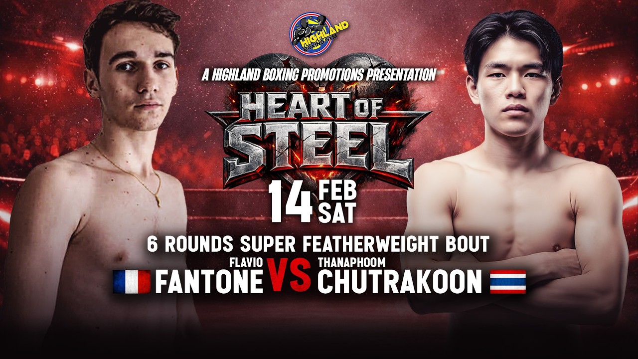 6 Rounds Super Featherweight Bout Highland Boxing Promotions presents HEART OF STEEL February 14, 2026 | Highland Boxing Gym, Bangkok, Thailand France 🇫🇷 meets Thailand 🇹🇭 in a high-energy Super Featherweight showdown inside the Highland ring. Expect explosive speed, sharp combinations, and relentless pressure from both warriors as they battle for pride and victory. On February 14, it’s not about romance — it’s about power, precision, and heart. #HeartOfSteel #HighlandBoxingPromotions #HighlandBoxingGym #SuperFeatherweight #FightNight #Bangkok #Thailand #France #BoxingLife #CombatSports