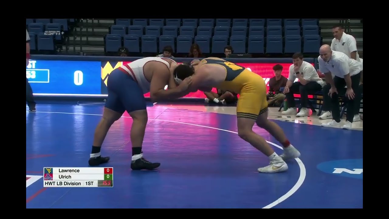2025/26 American vs West Virginia wrestling dual HWT Emmanuel Ulrich (AU) dec Brock Kehler (WVU) I do not own this video, all credit/rights to ESPN/EIWA