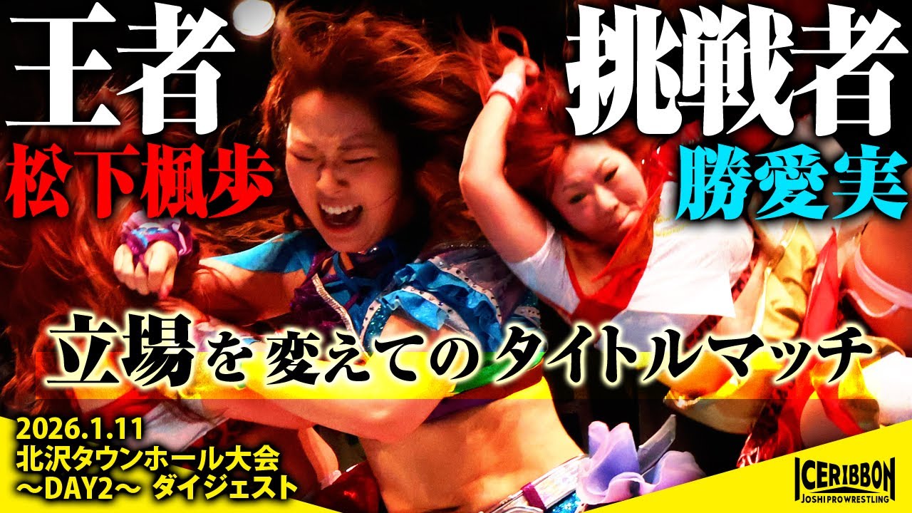 2026年1月11日に北沢タウンホールで行われた「アイスリボン北沢タウンホール大会~DAY 2~」の大会ダイジェスト。 北沢大会2日目は、ミス・モンゴルと緋彩ませ、トトロさつきと緋彩もえ、重量級&キッズタッグ対決で開幕。 今大会後に帰国するLil Marzの日本ラストマッチは、りことの初シングルマッチ。 3月28日に引退するキクが、海乃月雫とのキクラゲで登場。対戦相手はしのせ愛梨紗と若菜きらり。 Yappyとビッグ春華、大型対決を制するのは!? 大晦日にICEx∞王座を賭けて戦う筈だった松下楓歩と勝愛実が、王者と挑戦者の立場を入れ替えてのタイトルマッチ。 ■ICERIBBON LIVE(全試合配信) https://iceribbonlive.ctpfs.jp/store ◆チケット:3,500円 ※販売及びアーカイブ視聴期限:1月21日まで 大会試合結果 https://iceribbon.com/event_detail.php?id=3974 アイスリボンの直近大会スケジュール http://iceribbon.com/calender.php #プロレス #iceribbon #hotシュシュ #飛鳥プロレス #JTO #パズルプロレス #ミス•モンゴル #緋彩ませ #トトロさつき #緋彩もえ #LIl_Marz #りこ #海乃月雫 #キク #しのせ愛梨紗 #若菜きらり #Yappy #ビッグ春華 #神姫楽ミサ #藤田あかね #真琴 #柳川澄樺 #松下楓歩 #勝愛実