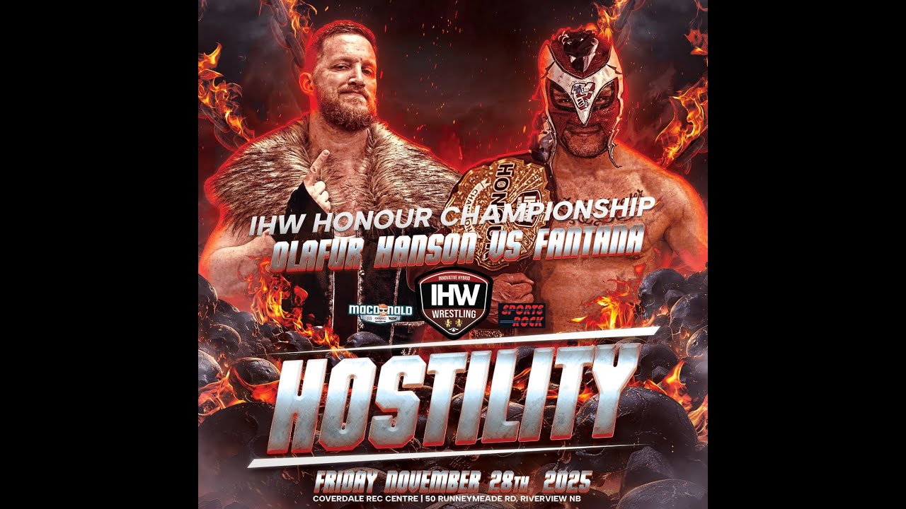 IHW Wrestling - Hostility Match #3: Honour Championship - 'Maritime Luchador' Fantana (c) vs Olafur Hanson 🎉 It's IHW Wrestling's 2025 Season Finale: Hostility! Live Friday November 28th from the Coverdale Centre in Riverview! Presented by Wyatt Laking at MacDonald Buick GMC Cadillac & Sportsrock! Thank you to our sponsors & supporters: U-Haul on Trinity Dr., Supplement King Moncton & Dieppe, Julian Watson Adventures, Bullet Liner Moncton, Hilton Garden Inn, Keep Sharp, Gaetan Lanteigne Photographe, AW Media, Julian Watson Travel, Sportsrock, Point Park Petro Canada, Blue Crocus Solutions, Mini Mall Storage & MaxFM103.9 📱Follow us: 🌐Ihwrestling.ca Facebook.com/IHWwrestling IG @ihw_wrestling X @WrestlingIHW YouTube: @WrestlingIHW 2022-current & @InnovativeHybridWrestling 2005-2021 Innovative Hybrid Wrestling is a family friendly independent professional wrestling organization out of Moncton, New Brunswick, Canada. We host pro wrestling events across New Brunswick and parts of Nova Scotia. We are available for festivals, public events, fundraisers, private bookings, birthdays and other events. Contact wrestlingihw@gmail.com for further information. #Wrestling #ProWrestling #IHW #WWE #AEW #TNAWrestling #ExploreNB #Canada #NewBrunswick #NovaScotia #luchalibre #lucha #aaa #cmll #iceland #Maritime #MaritimeWrestling