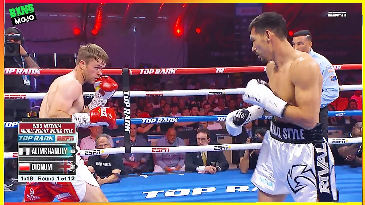 Date: May 21, 2022 Location: Resorts World Event Center, Las Vegas, Nevada, USA Title: Vacant interim World Boxing Organization (WBO) Middleweight Title (160 lbs) Janibek Alimkhanuly (Kazakhstan): 11-0 (7 KOs) Danny Dignum (England): 14-0-1 (8 KOs) Janibek Alimkhanuly came into the fight as an unbeaten rising star with strong amateur credentials and a growing professional resume, aiming to secure his first major title and announce himself on the world stage. #janibekalimkhanuly #boxing #toprank #boxinghighlights Footage rights provided by WSC Sports - https://tinyurl.com/BoxingExtra