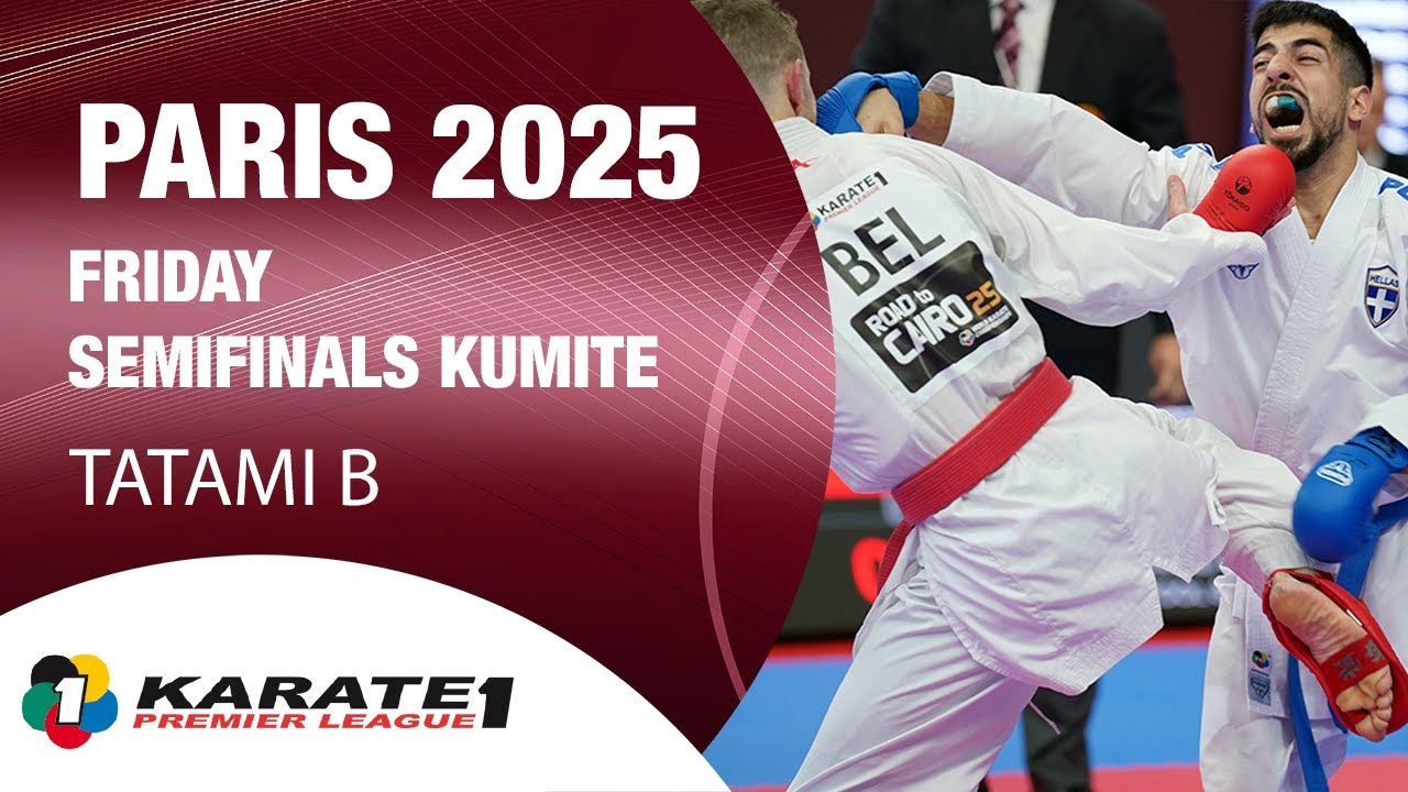 Karate1 PARIS: FRIDAY - Semifinals Kumite - TATAMI B | WORLD KARATE FEDERATION SUBSCRIBE ► http://bit.ly/N7c4H0 Official YouTube channel of the World Karate Federation *********************************** The World Karate Federation in Social Media: YouTube: https://www.youtube.com/user/WKFKarateWorldChamps Instagram: http://instagram.com/worldkaratefederation Twitter: https://twitter.com/worldkarate_wkf Facebook: https://www.facebook.com/wkfofficial TikTok: @worldkaratefederation Web: http://wkf.net/