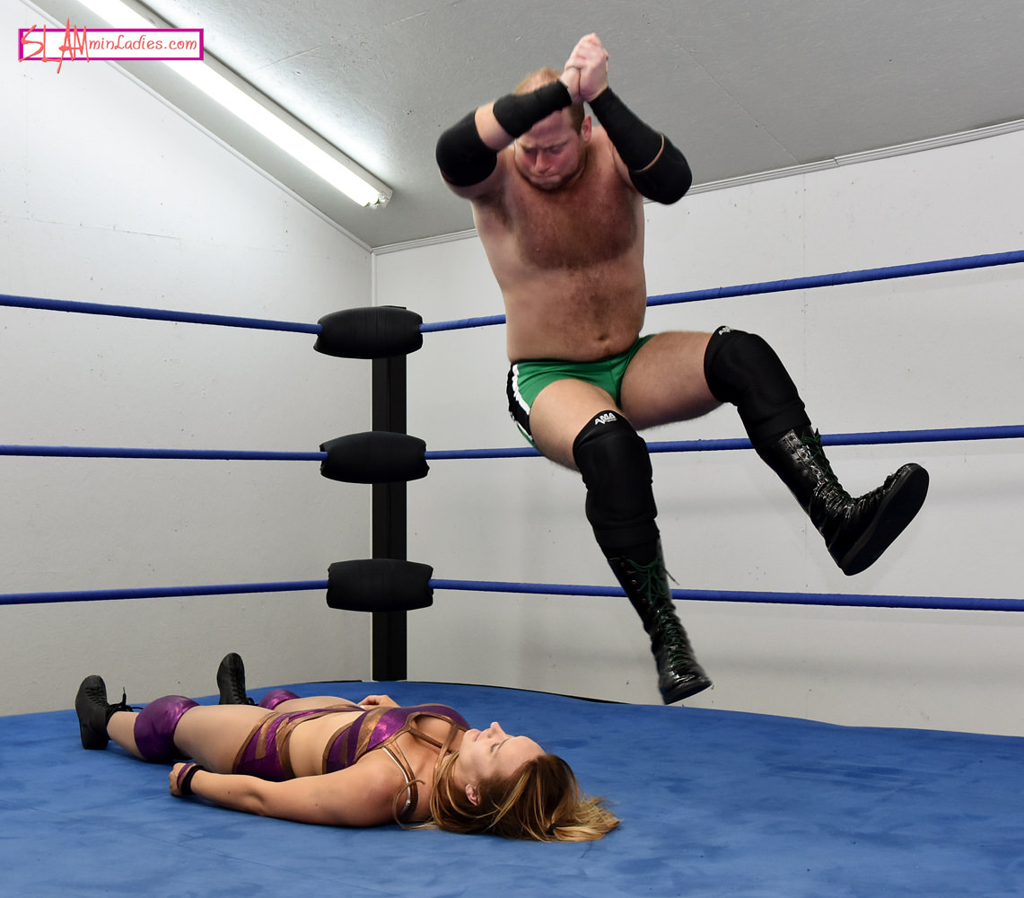 You would think that ignoring ladies first and doing his own long-winded introduction would be a pretty good indicator to Lady Chardonnay that Mr. O’Doyle isn’t exactly a gentleman. Unfortunately it wasn’t and the introduction interrupting forearm to the back of the head is too late to figure that out! Lady Chardonnay never knows what hits her-for the record it’s a face full of turnbuckle, Clothesline, and Bodyslam that lead to a bone-jarring Piledriver! With her neck in obvious duress, CJ does what any “gentleman” would do and targets it without mercy. He takes full advantage to deliver not one, but two impressive stalling Vertical Suplexes followed by the not the most electrifying but still devastating “Man” elbow to the helpless Brit. After holding her upside down for what seems like an eternity J spikes her with another sickening Piledriver that has Darcy seeing stars. She’s so out of it that when CJ asks her which move hurts more she gives the worst answer she can! Ask and unfortunately you receive both another stalling Suplex and brutal Piledriver, and all that’s left is the academic pin and who will have clean up the very pretty British stain left on the mat.