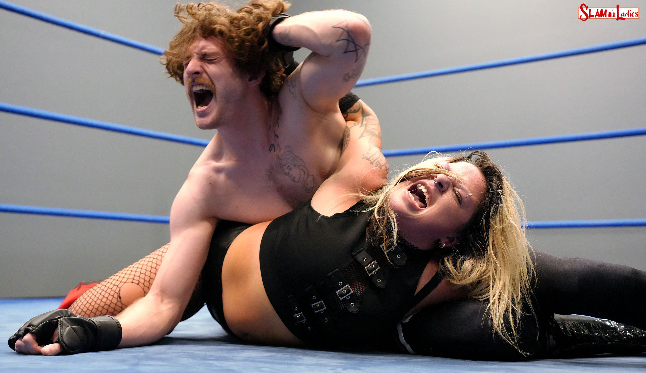 Ryan the Sensai makes his debut against the small but dangerous Lexi in this entertaining, well-fought 1 Fall matchup. The two trade numerous early near falls and keep up the pace throughout this match. Ryan controls the early stages of the bout, scoring near falls on elbow drops and legdrops. Lexi answers back with several roll-ups that nearly end the match early. Ryan keeps Lexi on the mat, delivering countless legdrops and elbow drops as well as stomps and foot chokes in the corner. It results in numerous pin attempts, but Lexi refuses to stay down, instead kicking out on the count of 2 every time. Ryan picks up the intensity as the match goes on, nailing Lexi with running kicks to the head, a crossface angel-wing submission hold, and a Fireman’s Carry. But Lexi is able to counter or kick out every time, and when she escapes a Fireman’s Carry by pulling Ryan’s hair, she turns it into a Sleeperhold. Suddenly the momentum is solidly behind Lexi. Can she finish the job, or will the newcomer earn a big mark in the win column?
