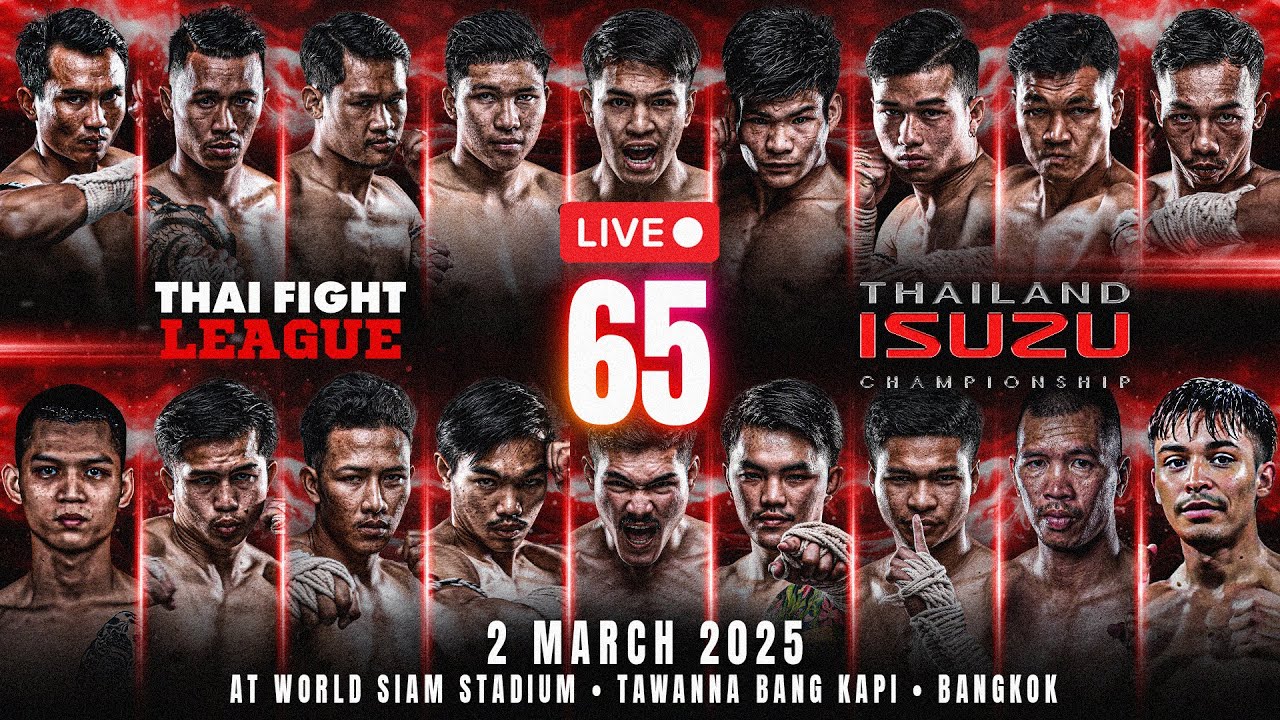 THAI FIGHT LEAGUE #65 🗓️ On Sunday, March 2, 2025 📍 At WORLD SIAM STADIUM, Tawanna, Bang kapi ⏰ LIVE 6 p.m. to 8 p.m. (ICT) 📺 TH Channel 8 Press 27 (TH & EN) 🇹🇭 YouTube Thai Fight Official 🇹🇭 ไลฟ์สด: youtu.be/watch?v=YbOHgwfcbHQ . #ThaiFightLeague #THAIFIGHT #KardChuek #ไทยไฟท์ลีก #ไทยไฟท์ #ไทยไฟท์ล่าสุด #muaythai #MuayBoran #thaifightkardchuek . Facebook : Thai Fight : https://www.facebook.com/thaifight.official/ Instagram : https://www.instagram.com/thaifight_official/ Twitter : https://twitter.com/THAIFIGHT_TWT Tiktok : https://www.tiktok.com/@thaifight.official Website : http://www.thaifight.com/