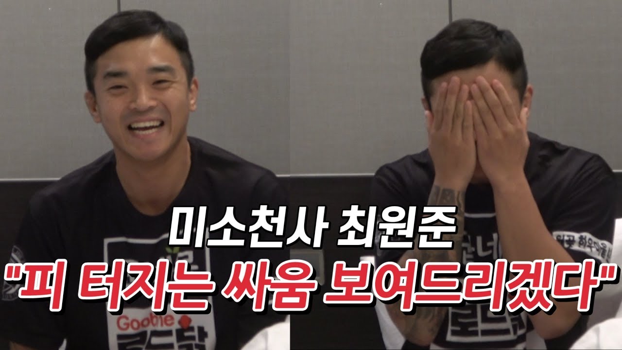 미소 천사(?) 최원준, "피 터지는 싸움 보여드리겠습니다." / 굽네몰 ROAD FC 056 ▶ 굽네몰 : http://bit.ly/2rluIeo ▶ ROAD FC 공식 홈페이지 : http://www.roadfc.com/ ▶ ROAD FC 페이스북 : https://www.facebook.com/roadfc/ ▶ ROAD FC 인스타그램 : https://www.instagram.com/roadfc/