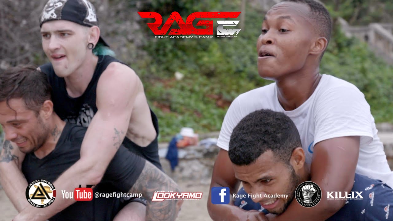 @ragefightcamp fight team training on a secluded tropical beach in Pattaya.
