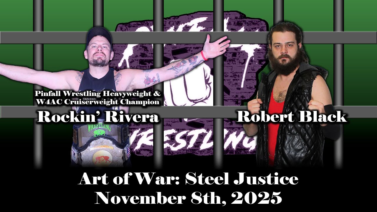 Robert Black won a title shot back at BurgooMania 2, and now he’s cashing in on double-champion Rockin’ Rivera in the main event of Art of War: Steel Justice… Originally taped November 8, 2025 at "Art of War: Steel Justice" Ring Announcer: Eric Roe Referees: Jayson Behrens Filming and Editing: Andrew Thannen Robert Black entrance music: "Uppers" by Stooki Sound & Mr. Carmack Rockin' Rivera entrance music: "Deathwish (feat. Baldacci)" by Misfit Soto Pinfall Wrestling claims no ownership of any copyrighted music used. All rights belong to their respective owners. Follow us on Facebook to stay updated on upcoming events: https://www.facebook.com/PWASpringfield