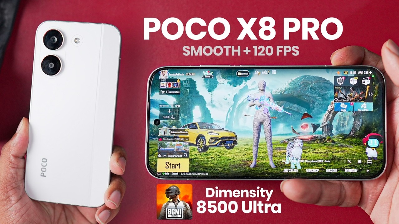 Is video me humne Poco X8 Pro Max ka full BGMI gaming test kiya hai jahan pe 120FPS performance, real FPS drops, heating, battery drain aur real gameplay experience check kiya gaya hai. Agar aap search kar rahe ho: ✔ Poco X8 Pro Max BGMI test ✔ Dimensity 9500s gaming performance ✔ Poco X8 Pro Max 120FPS test ✔ Poco X8 Pro Max heating test ✔ Poco X8 Pro Max battery drain ✔ Best gaming phone under 40000 Toh yeh video aapke liye hai! 00:00 Intro 00:07 Poco X8 Pro Max Overview 00:15 Poco X8 Pro Max Performance 00:24 Poco X8 Pro Max 120FPS Setup 00:40 Poco X8 Pro Max Gaming Start 01:05 Poco X8 Pro Max Game Turbo 01:29 Poco X8 Pro Max Temperature Plan 02:17 Poco X8 Pro Max TDM FPS 04:36 Poco X8 Pro Max Benchmarks 05:41 Poco X8 Pro Max Heavy Drop Test 06:45 Poco X8 Pro Max Gameplay Analysis 07:39 Poco X8 Pro Max FPS Behavior 14:41 Poco X8 Pro Max Battery Test 15:23 Poco X8 Pro Max Screen Recording Test 16:12 Poco X8 Pro Max Verdict 21:17 Poco X8 Pro Max FPS Chart 22:06 Poco X8 Pro Max Final Conclusion • This video is NOT sponsored. Pure real usage testing. 🙏 Thanks for Watching =========================================== *Business Email Only - Not For Questions & Tech Support 📩 Contact Me: contact.gamingpathshala@gmail.com Follow me on 📸 Instagram: https://www.instagram.com/techy.pathshala 🐦 Twitter/X: https://twitter.com/TechyPathshala 🎮 Techy Pathshala: https://www.youtube.com/@UCxVjtTQJ1oFkQ3iGhOngU3g