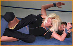The first meeting between these 2 and they definitely wrestle to test each others' skills. Back and forth with holds and reversals and just a little bit of hairpulling. Test of strength, Neckbreaker, Lungblower--fast furious action that will keep you guessing. Sleeper doesn't do it, X-Factor doesn't do it, combination Full Nelson/Waistscissor doesn't do it--The ladies are frustrated by just how tough their opponent is and wonder what it will take to put her away!