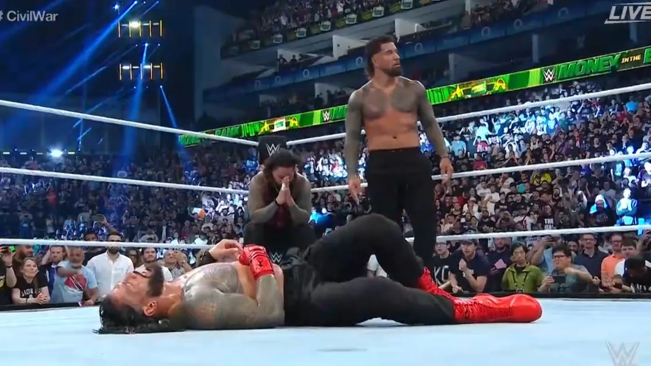 Roman Reigns & Solo Sikoa Vs The Usos Full Match WWE Money in the Bank 2023 Highlights Jey Uso Pins Roman Reigns Usos Destroy Roman Reigns & Solo Sikoa WWE Money in the bank 2023 . #romanreigns #wwe #moneyinthebank #usos #solosikoa #jeyuso #mitb #jimmyuso #civilwar