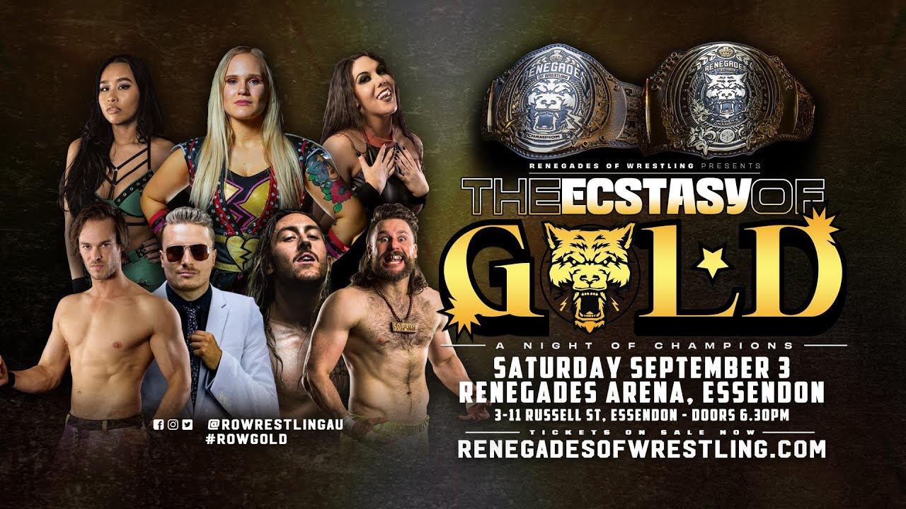 THIS SATURDAY NIGHT! Saturday September 3rd! The first ever Renegades of Wrestling champions will be crowned.... Renegades of Wrestling - The Ecstasy of Gold RENEGADES ARENA - 3-11 Russell St, Essendon (Opposite Essendon Station) Tickets available at the door, or online: bit.ly/ROWGOLD