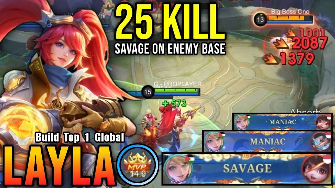 SAVAGE & 2x MANIAC!! 25 Kills Layla Perfect Savage on Enemy Base!! - Build Top 1 Global Layla ~ MLBB