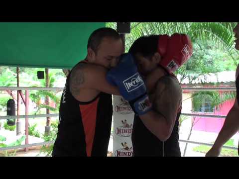 Tiger Muay Thai and MMA training camp, Phuket, Thailand trainers 4-time Lumpinee Champion Master Goi, Kru Kay, Kru Phet demonstrate Muay Thai boxing techniques: Step 1: when opponent locks you up in the clinch with his/her forearms around your neck you take strongest arm and use that hand to push opponents face away from you, making sure the palm of your hand is covering their mouth and nose so as to restrict breathing and make them more likely to break the hold and also using your head and shoulder to trap opponents arm. Step 2: take other hand and place on opponents head bringing them down into your knee strike. Train like a Thai and fight like a Thai @TigerMuayThai http://www.tigermuaythai.com