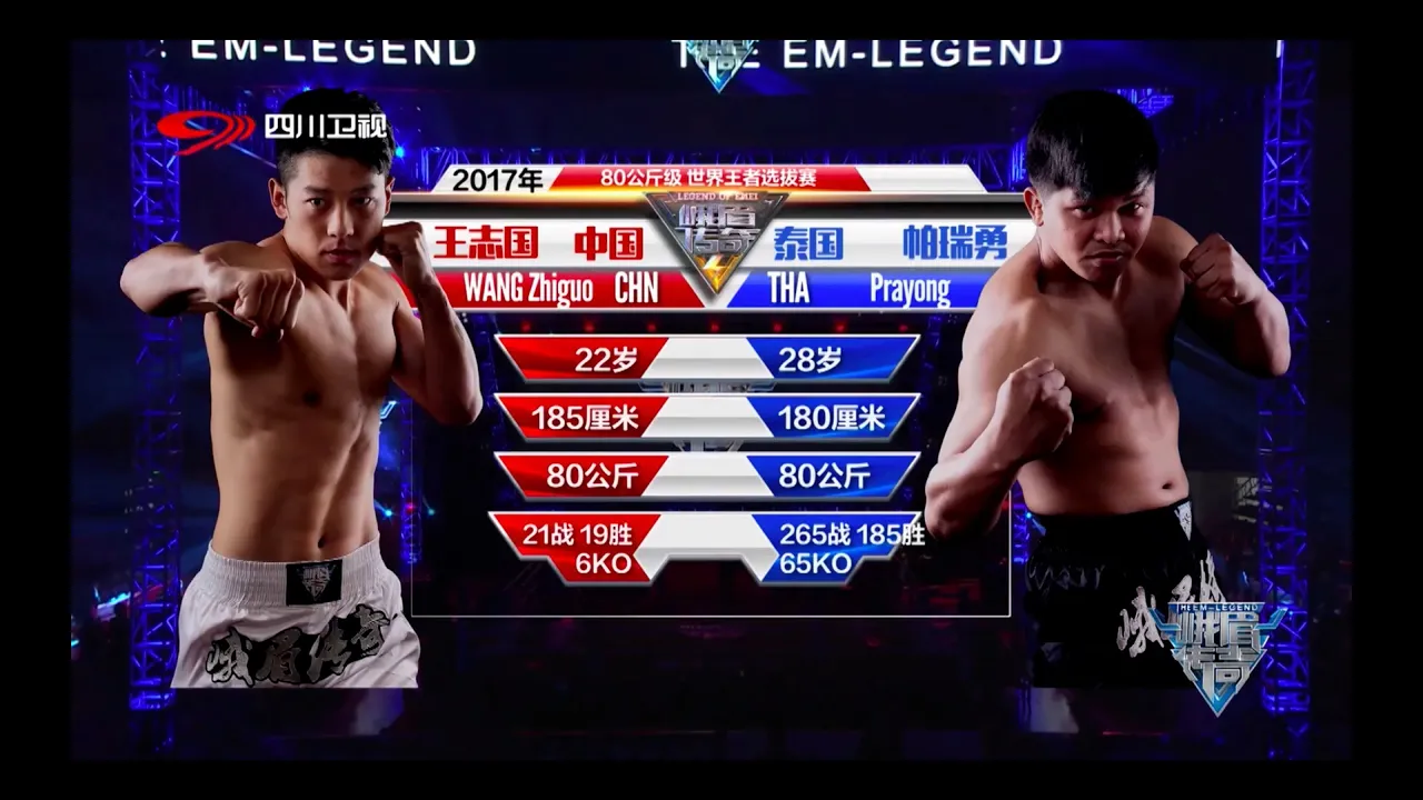 EM Legend - Wang Zhiguo vs Prayong Please suscribe to our YouTube Channel: http://t.ly/1aTD Connect to EM Legend: Instagram: http://t.ly/dRUu Facebook: http://t.ly/cgwu EM Legend is a leading #kickboxing and #muaythai promotion headquartered in Chengdu, China. EML events combine the essence and spirit of traditional martial arts, with the modern fighting shows, events and entertainment. In only 5 years, EML has organized more than 42 A-Class and 100 other fighting events in China, Great Britain, New Zealand, Hungary and Thailand. #beyourownhero