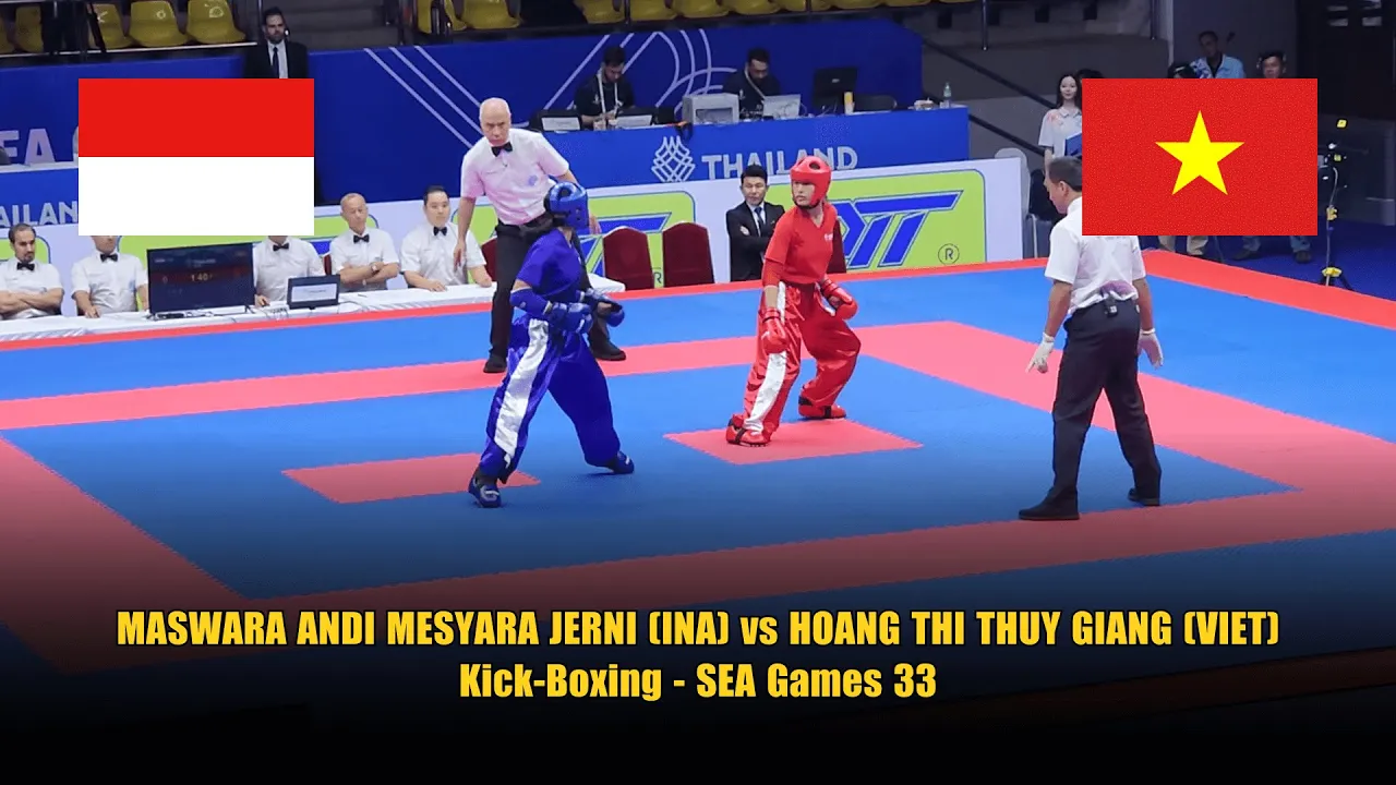 WOMEN’S POINT FIGHTING – 50KG: MASWARA ANDI MESYARA JERNI (INA) VS HOANG THI THUY GIANG (VIE) – SEA GAMES 33 Get ready for a high-speed women’s Point Fighting matchup as two talented athletes face off on the SEA Games 33 stage. This exciting contest features Indonesia’s Maswara Andi Mesyara Jerni taking on Vietnam’s Hoang Thi Thuy Giang in the competitive 50kg division. Representing Indonesia, Maswara Andi Mesyara Jerni showcases speed, sharp entries, and quick scoring techniques, aiming to control the pace with precision and movement. Across the ring, Hoang Thi Thuy Giang of Vietnam answers with smart timing, disciplined defense, and effective counters, turning every exchange into a tactical battle for points. 🏆 WHAT YOU’LL WITNESS: Lightning-fast point-scoring exchanges and clean techniques High-level women’s point fighting skill and tactical awareness Quick footwork, sharp reactions, and ring control A technical international clash driven by national pride This bout is a true test of speed, accuracy, and strategy, delivering nonstop action for fans of technical martial arts competition at the SEA Games 33. #KickBoxing #WomensPointFighting #CombatSports #MASWARAANDIMESYARAJERNI #HOANGTHITHUYGIANG #IndonesiaVsVietnam #50kg #SEAGames33 #PointFighting #MartialArts #AsianFighters